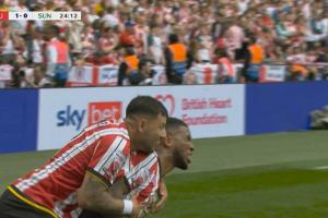 体育资讯05月24日讯 2024-25赛季英冠升级附加决赛,谢菲尔德联与桑德兰争夺最后一个英超席位。比赛第24分钟,谢菲联破门取得1-0领先!哈默精妙外脚背分球,泰尔斯-坎贝尔挑射破门。