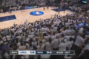 体育资讯05月25日讯 西决G3,森林狼首节34-14领先雷霆20分。