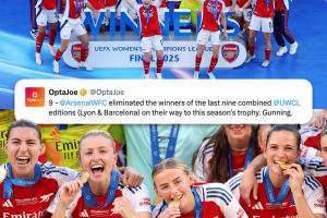 阿森纳女足半决赛战胜里昂,决赛胜巴萨,打破里昂&巴萨近9个赛季对欧冠冠军的恐怖垄断。