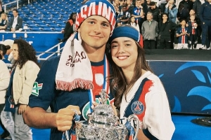 法国杯决赛,巴黎3-0击败兰斯,夺得法国杯冠军,包揽国内三冠(法甲+法国杯+法超杯)。若奥-内维斯随队夺冠,赛后手捧奖杯与19岁女友甜蜜合影,羡煞旁人。
