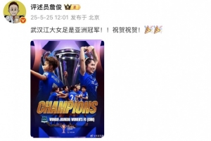 体育资讯5月25日讯 今天,詹俊更新社媒,祝贺武汉车谷江大女足问鼎女足亚冠冠军。
