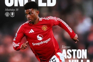 曼联官方更新社媒动态,发布了英超收官战的海报,阿玛德单人出镜。