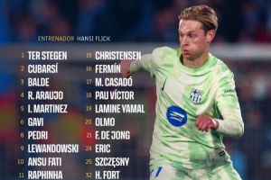 体育资讯5月25日讯 北京时间明天凌晨3点,西甲第38轮巴萨客战毕尔巴鄂竞技,巴萨公布此役大名单。亚马尔、拉菲尼亚在列,阿劳霍回归,孔德、费兰-托雷斯等缺席。