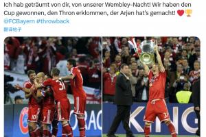 施魏因斯泰格在社媒晒照并写道:“我曾梦见你,梦见我们的温布利之夜! 我们捧起奖杯,登顶欧洲称王,全凭罗本的一锤定音! ”