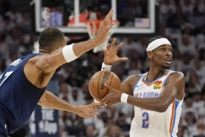 两支面筐球队,有五外,但五外各有不同形式的瑕疵。有双高阵容,双高阵容进攻各有难题。雷霆胜在了团队防守优势,这个优势让他们可以赢这样的比赛——双方都不算流畅,但他们让对面更不流畅,自己靠硬解托底,靠快攻积攒优势,直到角色球员回应三分,收下对手。这是雷霆惯常的赢球方式。理论上,狼吃他们这一套。狼支配球不如掘金,不像掘金那样可以靠约基奇作灯塔策应,放大锋线体型优势稳住阵地战。狼更需要三分上占优,进而让他们的面筐进攻捋顺。可惜三分这事儿不一定总靠谱,不准的时候就很难赢。