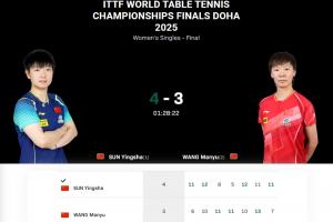 体育资讯5月25日讯 世乒赛女单决赛,孙颖莎4-3王曼昱,生涯第二次夺得世乒赛女单冠军。