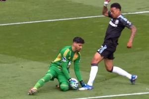 体育资讯05月26日讯 英超收官战,曼联vs维拉。比赛第73分钟,巴因德尔出击抱球不稳,罗杰斯捅了一脚将球从他手中断下,并且打空门得手!但主裁判判罚罗杰斯犯规,VAR介入确认犯规,进球无效!曼联仍0-0十人维拉。