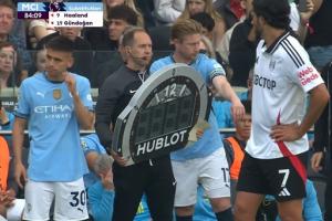 体育资讯05月26日讯 英超第38轮,富勒姆vs曼城,比赛第85分钟,德布劳内、埃切维里替补登场,哈兰德、京多安被换下,丁丁迎来英超告别战。