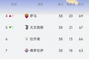 体育资讯5月26日讯 意甲第38轮,目前尤文1-1扳平威尼斯,罗马1-0领先都灵。