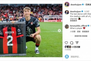 怀森今夏将加盟皇马,此役是他在伯恩茅斯的告别战,赛后他在社交媒体上晒出与纪念球衣的合照,并写道:“在这座球场与大家一起,身穿这件球衣的最后一舞。加油伯恩茅斯!”