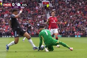 裁判托马斯-布拉莫尔判定此球无效,他认为罗杰斯在巴因德尔持球时将球踢出。然而回放画面显示,在罗杰斯触球前,曼联门将已经失去了对皮球的控制。
