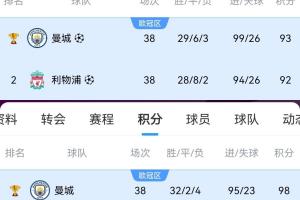 利物浦84分即夺冠,不免想到球队之前两次90+分亚军的伤心回忆。在2018/19赛季,利物浦拿到97分,仅落后曼城一分屈居亚军。而在2021/22赛季,利物浦拿到92分,又一次只输给曼城一分位列第二。利物浦也因此保持着英超亚军的第一和第二高分纪录。