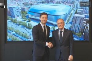 “马德里主义是一种每天都在滋养的精神,皇家马德里就在人们的心中,因为这个队徽代表着在这座皇马城里每天都在努力践行的价值观。这些价值观是皇马取得难以匹敌成绩所必需的,也是我们近年来实现史上最辉煌成就的关键,俱乐部的力量在于不断努力实现所有马德里主义者的梦想。因此,今天是一个非常特别的日子。我们迎来了一位世界级教练,他深知皇马的意义,深知这件球衣的重要性。今天,让我们欢迎自己人的到来:哈维-阿隆索。”