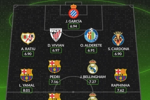 后卫:拉提乌(巴列卡诺)、维维安(毕尔巴鄂竞技)、阿德雷特(赫塔费)、卡尔多纳(比利亚雷亚尔)