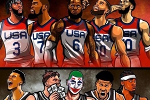 体育资讯5月27日讯 今日媒体Hoops晒出美国队VS世界队对阵图,并问道:“谁会在系列赛中胜出?”