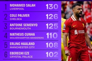 1-萨拉赫(利物浦):130次