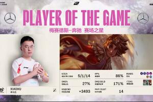 体育资讯5月27日讯 LPL第二赛段骑士之路WBG击败TT拿下首局,xiaohu凭借本场比赛中岩雀的亮眼表现斩获第14次MVP!