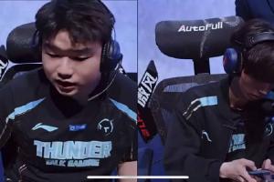 体育资讯5月27日讯 LPL骑士之路WBG对阵TT赛中,TT选手在准备阶段使用手机。