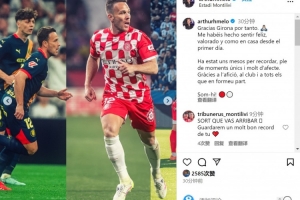 阿图尔本赛季后半段被尤文外租至赫罗纳,他的租借合同即将到期,这位巴西中场社媒晒出身穿赫罗纳球衣的照片,并写道:“感谢赫罗纳给予我这么多。从第一天起,你们就让我感到幸福、被重视,让我有家的感觉。这几个月令人难忘,充满了独特时刻和浓浓的感情,感谢球迷、俱乐部以及所有参与其中的人。加油!”
