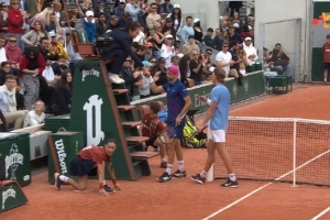 体育资讯5月27日讯 法网男单首轮,16号种子、去年法网八强迪米特洛夫6-2/6-3/2-6领先情况下,因伤退赛,最近4个大满贯全部领先时中途退赛。