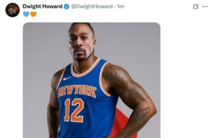 赛后,前NBA球员霍华德晒出自己身穿尼克斯球衣的PS照,并配上尼克斯颜色的心形表情“💙🧡”