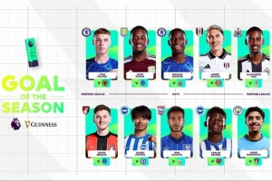 体育资讯5月28日讯 英超官方公布赛季最佳进球候选,三笘薫、帕尔默等球员的进球在列,多个世界波入围。