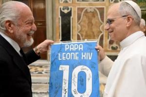 教皇利奥十四世:媒体说我是罗马球迷。但是,欢迎你们。那是媒体说的,并非你们在媒体上读到的所有内容都是真的。欢迎你们!并祝贺你们赢得联赛冠军!这是那不勒斯城的一大盛事。