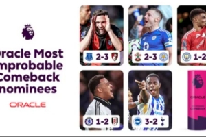体育资讯5月28日讯 英超官方开启投票,评本赛季最不可思议逆转比赛。