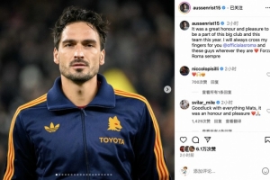 胡梅尔斯写道:“能够成为这家伟大俱乐部和这支球队的一员,是莫大的荣幸与快乐。无论未来身在何处,我都会永远为罗马还有这些伙伴们加油 ❤️ ”