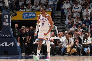 体育资讯5月29日讯 NBA季后赛西决G5,雷霆半场65-32领先森林狼。