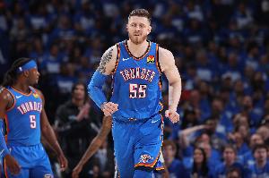 本轮系列赛,雷霆中锋哈尔滕施泰因攻防两端稳定发挥,5场比赛场均19.6分钟拿到6.8分6篮板,命中率高达68%。