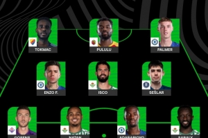 体育资讯5月29日讯 欧协联决赛,切尔西4比1击败皇家贝蒂斯最终问鼎冠军。欧协联官方评本赛季欧协联最佳阵容,其中帕尔默领衔锋线,恩佐、伊斯科在列。