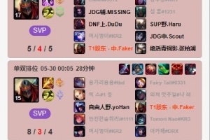 体育资讯5月30日讯 根据韩服排位统计小程序显示,Faker近期韩服上分路坎坷,八局仅赢一局,招牌阿狸和劫更是合砍五连败。