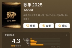 体育资讯5月30日讯 今日歌手2025豆瓣开分,《歌手2025》豆瓣开分4.3。吧友们觉得高了低了?