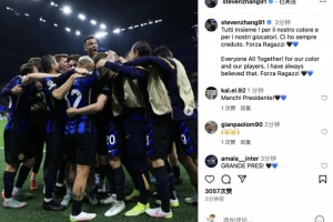 体育资讯5月31日讯 北京时间6月1日凌晨3点,万众瞩目的欧冠决赛,国际米兰对阵巴黎圣日耳曼。前国米主席张康阳更新社媒为国米将士加油。