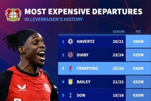 勒沃库森队史出售球员转会费排名: