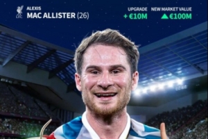 1、麦卡利斯特:1亿欧(24-25赛季,利物浦)