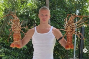 体育资讯6月1日讯 在个人社媒,曼城前锋哈兰德晒出照片,他一手拿着一只大龙虾。