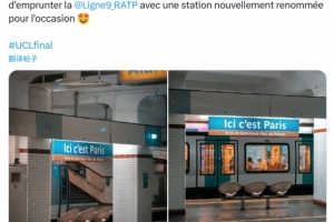 2024-25赛季欧冠决赛即将上演,巴黎对阵国米,巴黎地铁9号线车站暂时更名,新名称为“这里是巴黎”,以为巴黎圣日耳曼加油。