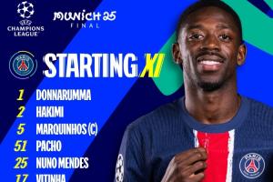 体育资讯06月01日讯 巴黎vs国米的欧冠决赛将在凌晨3点打响,两队已经公布了首发阵容。