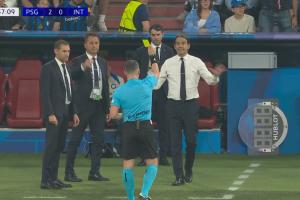 体育资讯06月01日讯 巴黎vs国米第58分钟,小因扎吉在场边抱怨判罚,裁判到场边对他出示了黄牌!