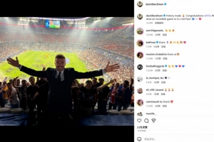 前巴黎球员贝克汉姆也来到现场观战,他在个人社媒晒出现场照片祝贺巴黎,写道:“创造历史,恭喜巴黎!哇,多么不可思议的一场比赛。”