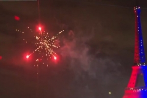 据法国媒体la chaine L'Équipe报道,为庆祝球队夺冠,巴黎球迷在埃菲尔铁塔周围燃放烟花,气氛非常热烈。