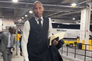 赛前步行者名宿雷吉-米勒身穿正装到场,他对着镜头表示:“我今天穿了一身黑,懂的都懂。”
