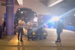赛后巴黎总监(战略顾问)坎波斯举着奖杯跳舞庆祝,与球队大巴内的巴黎球员们互动,然后他亲自将奖杯送上大巴。