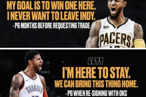 除了步行者与雷霆的当家核心均由保罗-乔治的交易产生,美媒还挖出了乔治昔日对两队的承诺: