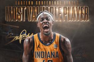 体育资讯06月01日讯 步行者4-2淘汰尼克斯,与雷霆会师总决赛,西亚卡姆险胜哈利伯顿当选MVP。