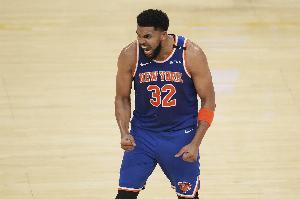本赛季,尼克斯中锋唐斯表现出色,敢于对抗冲击内线,同时保持了较高的外线命中率,常规赛出战72场,场均34.9分钟拿到24.4分12.8篮板(篮板榜第二位)3.1助攻1抢断,三项命中率分别为52.6%、42%、82.9%。