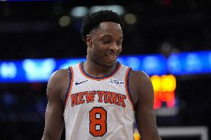 尼克斯球员阿努诺比在漫长赛季中都保持了高水准,他在常规赛出战74场比赛,场均36.5分钟位居联盟第5,得到18分4.8篮板2.2助攻1.5抢断0.9盖帽,三项命中率为47.6/37.2/81%。