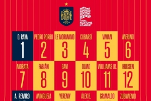 体育资讯6月2日讯 西班牙公布本期国家队球员号码(欧国联比赛号码),莫拉塔7号、加维9号、奥尔莫10号、亚马尔19号。